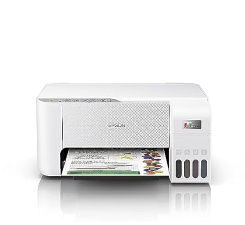 Epson - ايبسون طابعة حبر منزلية L3256 من ايكو تانك مقاس ايه 4، طابعة ملونة 3 في 1 مع واي فاي واتصال تطبيق سمارت بانل، لون ابيض، صغيرة الحجم