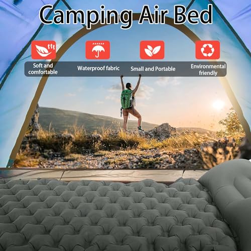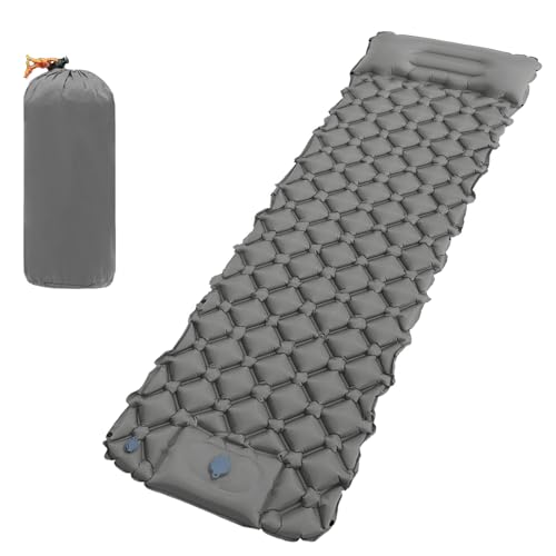 EqiEch - وسادة نوم للتخييم من ايكيتش، مرتبة تخييم خفيفة الوزن قابلة للنفخ، سجادة تخييم متينة مقاومة للماء، مع مضخة مدمجة، وسادة نوم صغيرة محمولة للخيمة، شنطة الظهر، السفر، المشي لمسافات طويلة (لون رمادي)