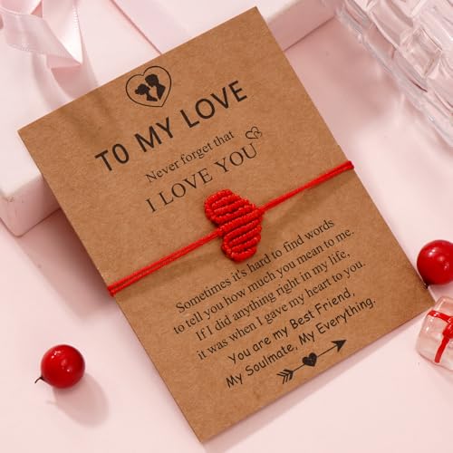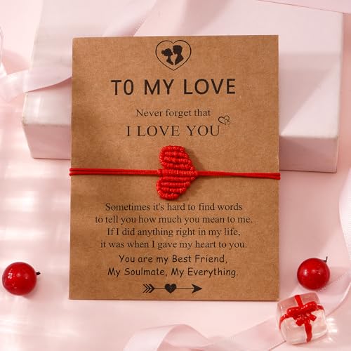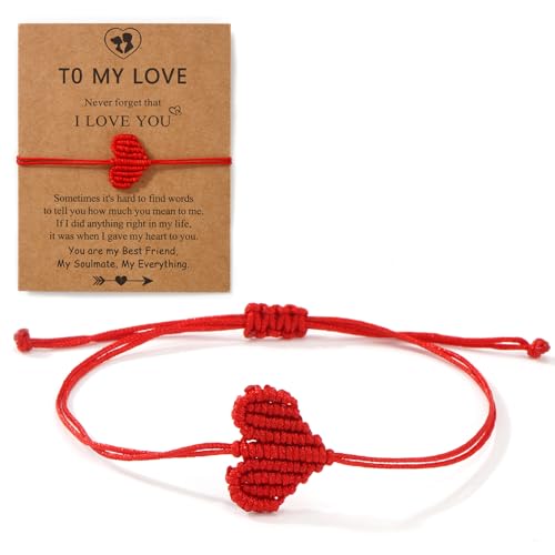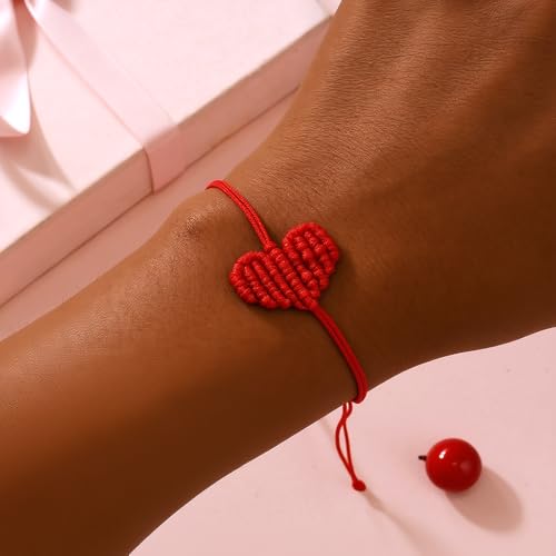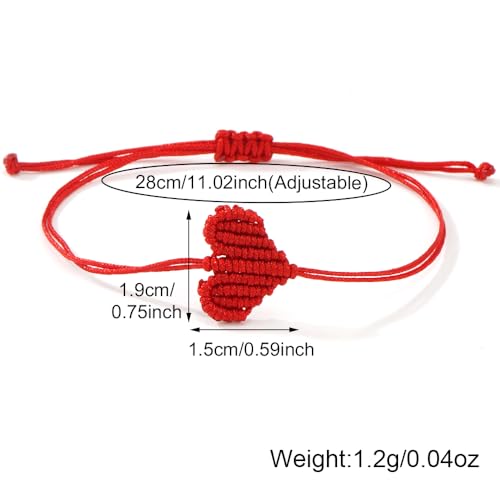 EQUBIO - سوار مكرمية بحبل احمر على شكل قلب قابل للتعديل مصنوع يدويا من ايكوبيو، مجوهرات خيط مضفر، هدية صداقة للنساء والرجال