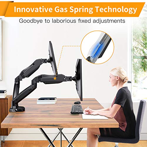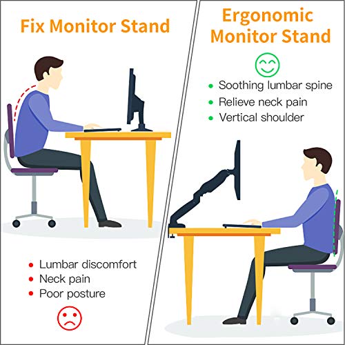 - PERFECT WORK SOLUTION: The dual monitor mount stand allows you to work in sitting or standing positions for more comfort and movement throughout the day. Improve your workspace by adding a monitor mount to your setup.