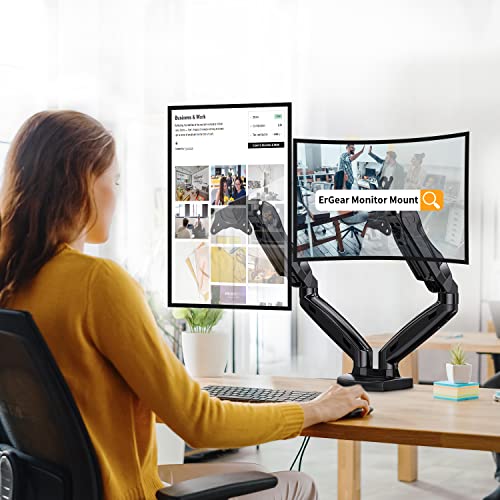 ErGear - ErGear Dual Monitor Stand, Dual Monitor Mount for 13-30 inch Screens, VESA 75x75mm-100x100mm, Up to 17.6lbs, Tabletop Mount for Home and Office