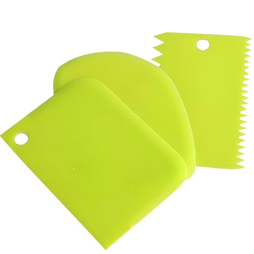- تحتوي هذه المجموعة على ثلاث كاشطات عجين بلاستيكية متعددة الاستخدامات، كل منها مصمم بأنماط حواف فريدة - خشنة ومنحنية ومسطحة - مما يسمح بتزيين الكعك بدقة والتعامل مع العجين وكشط الطعام في مهام المطبخ المختلفة، وكلها مصنوعة من البولي بروبلين الآمن غذائيًا من أجل السلامة والمتانة.