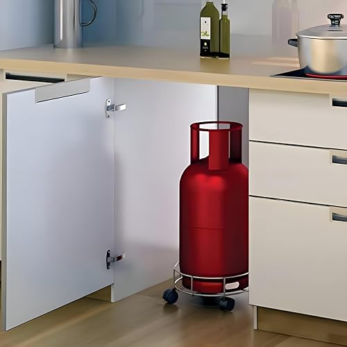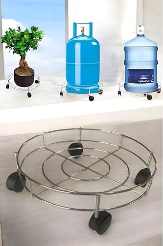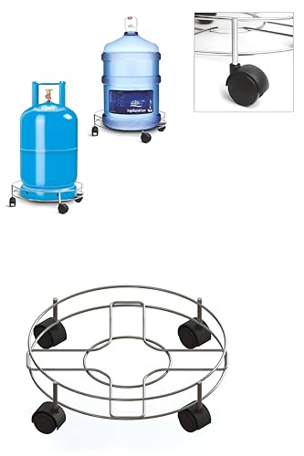 Generic - قاعدة أسطوانية مريحة - حامل من الفولاذ المقاوم للصدأ سهل الاستخدام مع إطار مرن بأربع عجلات ثابتة وسعة أسطوانة 33 سم وسطح مقاوم للتآكل ومقبض مريح للأمان