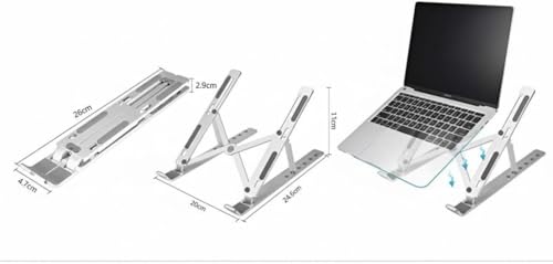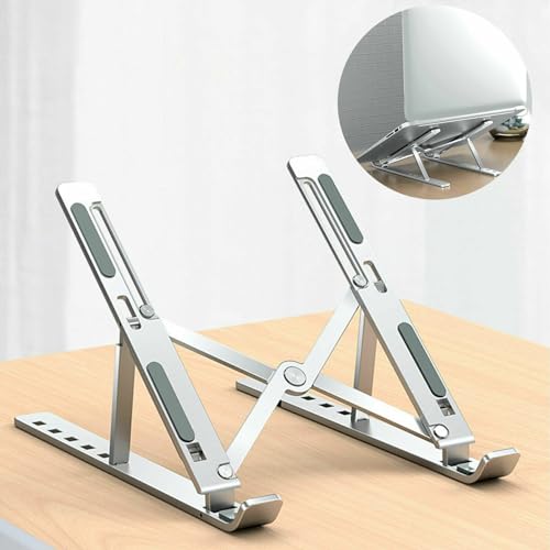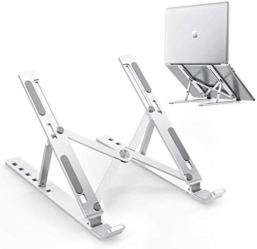 Generic - حامل لاب توب محمول، حامل الومنيوم قابل للطي، 6 مستويات ارتفاع وزاوية قابلة للتعديل (فضي)