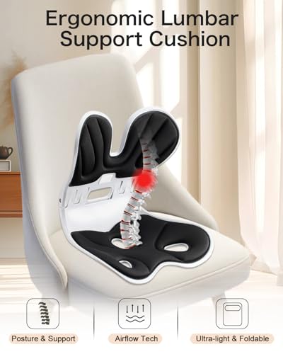 SPUER - دعامة مريحة للفقرات القطنية - دعم ظهر عريض ومتين للغاية لكرسي المكتب - مستلزمات العمل من المنزل (لون أسود)