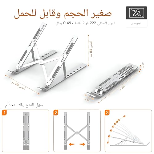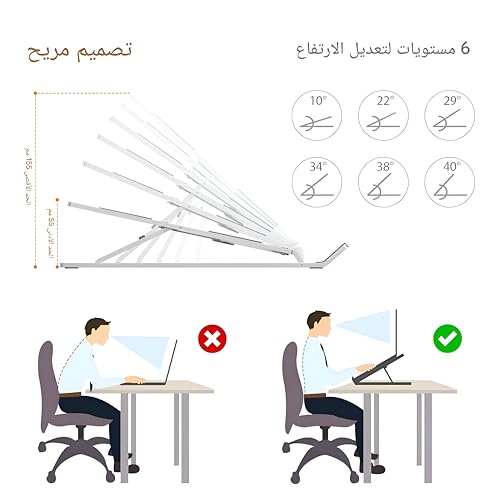 - This laptop stand offers six adjustable angles ranging from 10° to 40°, allowing users to find the perfect ergonomic position for comfortable typing and viewing, reducing neck and shoulder strain during long work sessions.