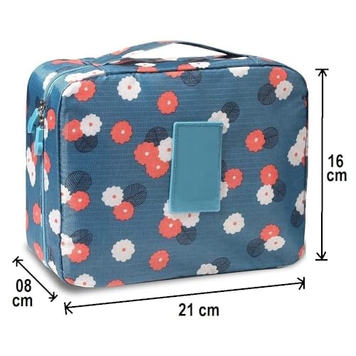 ERHETUS - ايرهيتوس شنطة مكياج متعددة الاغراض للسفر | شنط ادوات الزينة وحقائب سفر الجيوب للبنات | منظم تخزين داخلي وشنطة غسيل للنساء - زهور زرقاء المقاس: 21 × 16 08 سم من اريثيوس