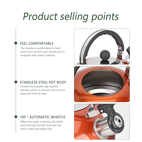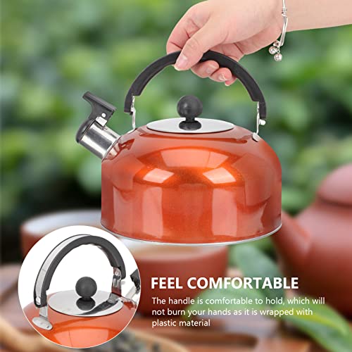 ERINGOGO - غلاية شاي بصفير- غلاية شاي 2 كوارت مطلي بالمينا على الستيل مع مقبض مريح بارد، غلاية شاي من الفولاذ المقاوم للصدأ للبوتاجاز، موقد الحث العالمي، مواقد كهربائية عالمية - برتقالي