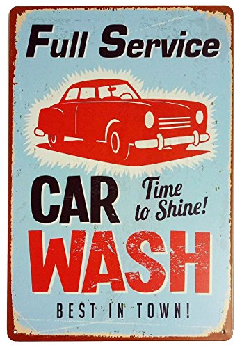 ERLOOD - ايرلوود لافتة عتيقة من القصدير لتزيين الحائط والجراج، ملصق معدني للخدمة الكاملة لغسيل السيارات الأفضل في المدينة 8 انش × 12 انش