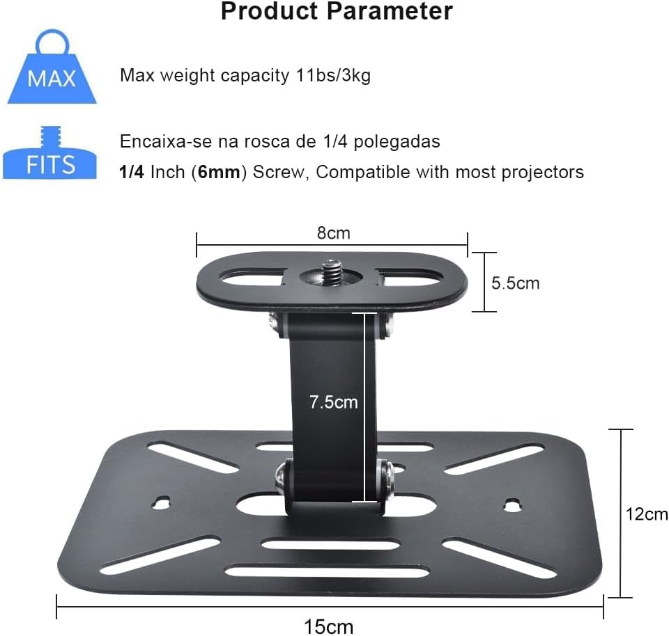 - متوافق بشكل عالمي: يناسب أجهزة العرض التي تحتوي على واجهة مسمار 6 ملم أجهزة عرض البروجكتور غير مشمولة، الحامل فقط). حامل البروجكتور الصغير مناسب لمجموعة متنوعة من ماركات ونماذج البروجكتور، كما أنه مناسب أيضًا للكاميرات. يُستخدم مع حوامل الموبايلات لتلبية احتياجات مختلفة.