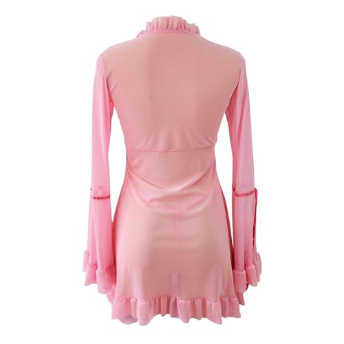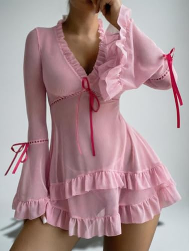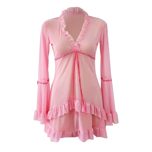 Generic - Erotic Horn Sleeve Lingerie - Deep V-Neck Mesh Nightdress with Matching G-Strings for Seductive Nighttime Glamour