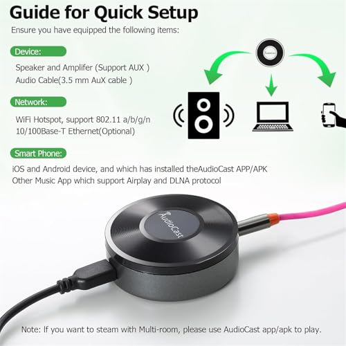 ERSINLEN - محول صوت لاسلكي واي فاي M5 من ارسينلين، 2.4G شبكة واي فاي ايربلاي دي ال ان ايه سبوتيفاي اي هارت راديو يدعم بث الصوت الى مكبر الصوت يدعم انظمة متعددة الغرف