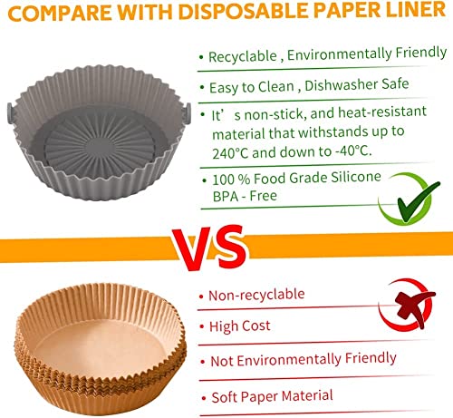 - [ملحق للمقلاة هوائية لا غنى عنه] - أواني سيليكون قابلة لإعادة الاستخدام. وفر المال الذي تنفقه على شراء ورق الزبدة واستبدله بصينية المقلاة الهوائية عند تشقق أو تآكل طبقة الطلاء. استمتع بالأطعمة المقلية الصحية واللذيذة مع وعاء المقلاة الهوائية دون أي بقايا مترسبة دهنية ومحترقة.