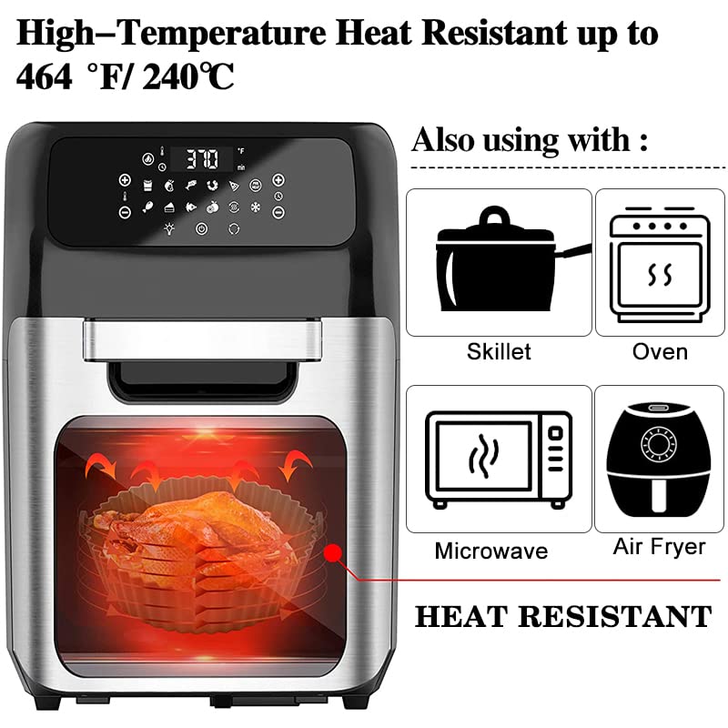- [مقاومة للحرارة وآمنة للطعام] - تستخدم سلة السيليكون للمقلاة الهوائية سيليكون ممتاز وخالي من البيسفينول أ وآمن غذائيًا يمكنه تحمل ما يصل إلى 450 درجة فهرنهايت/230 درجة مئوية للقلي بالهواء والبخار والخبز في الفرن. بطانة السيليكون في طاسة القلي الهوائية قابلة لإعادة الاستخدام، لذلك لن تتشوه أو تتلف بعد مئات الاستخدامات، لأنّها إكسسوار طاسة القلي الهوائية الأكثر قيمة.