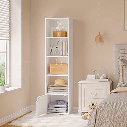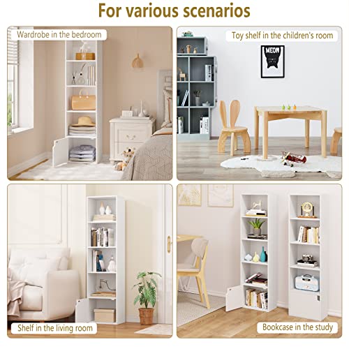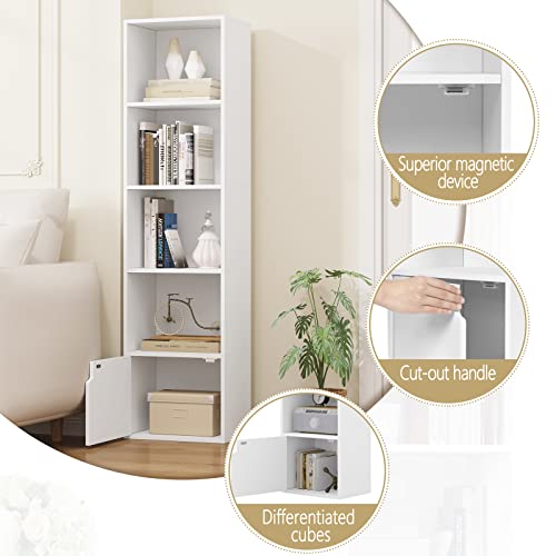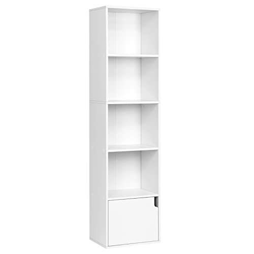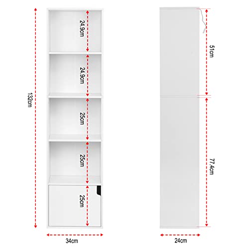 eSituro - خزانة كتب عمودية SBKC0041 من ايسيتورو مع 4 مساحات تخزين مفتوحة وخزانة واحدة خشبية بيضاء عصرية للمكتب وغرفة المعيشة والدراسة 34 × 24 132 سم خشب مُصنع مطلى