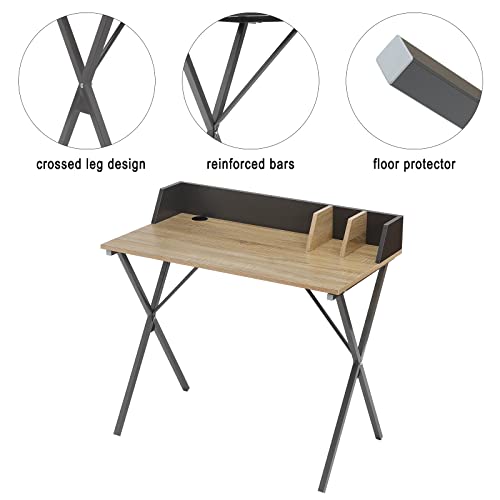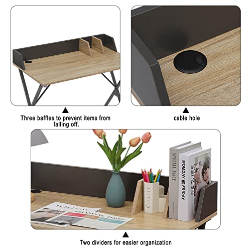 - ORGANIZED STORAGE: This desk table has a small shelf that is designed to place pencil holders, documents, books, magazines, notes, dictionaries, small decorations and other objects; The hole on the desk can organize the wires of lamps, computers, etc. and make the desk more tidy