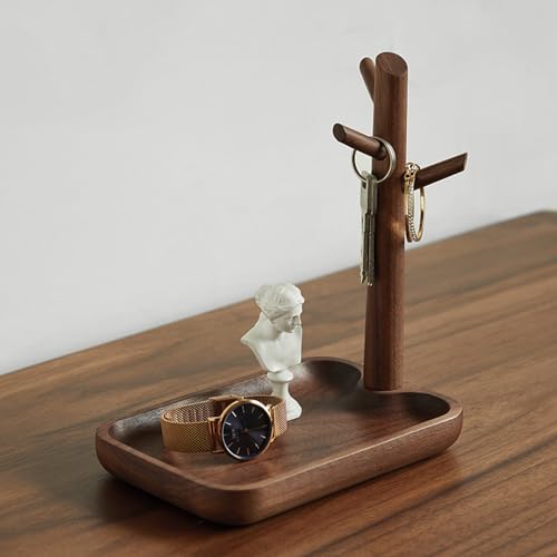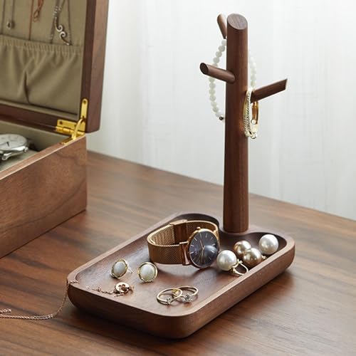 - منظم المجوهرات هذا مصنوع من خشب الجوز الحقيقي ويتميز بلمسة نهائية ناعمة وريفية تناسب غرف النوم وطاولة المدخل..