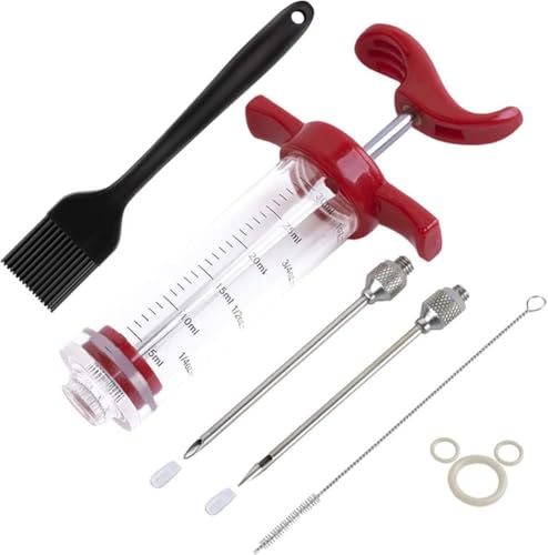 esmusssein - Meat Injector Syringe,Stainless Steel Food Seasoning Syringe Kit with 2pcs Needles,1pc Barbecue Brush, and 1pc Needles Cleaner, Ideal for BBQ, Grilling, Baking and Cooking