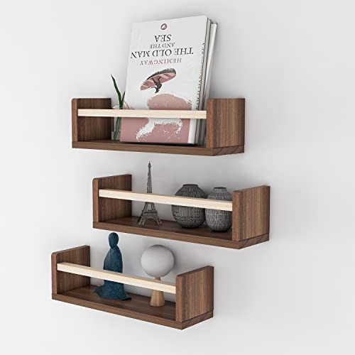 Esonal - ارفف كتب لغرفة الاطفال من ايسونال مقاس 16 انش منظم رفوف خشب الجوز الفاتح رف جداري عائم لديكور المنزل