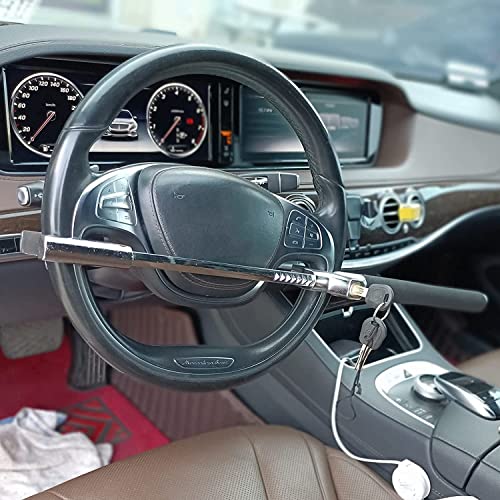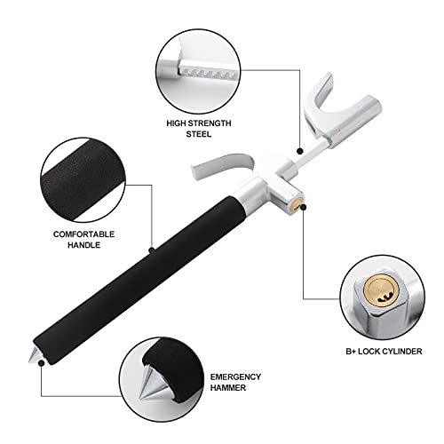 Esploratori - Steering Wheel Lock Anti Theft Car Device Hydraulic Telescopic Lock Lever Security Hammer Window Breaker Universal Fit Vehicles with 2 Keys(White)