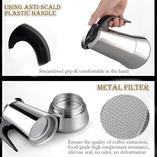 - This espresso maker is crafted from high-quality stainless steel, providing durability and resistance to rust and wear. The use of food-safe materials ensures that no unpleasant odors will affect the pure taste of your coffee, allowing you to enjoy every sip without compromise.