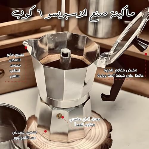 Generic - espresso maker, 6 Cups of Rich Espresso with our Aluminum Mocha Maker and Lid - Classic Italian Coffee Experience (Silver)