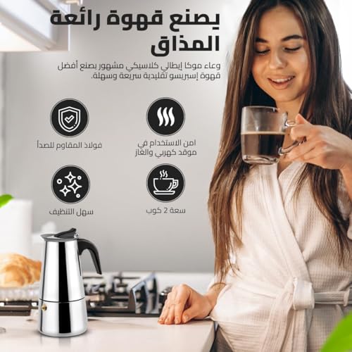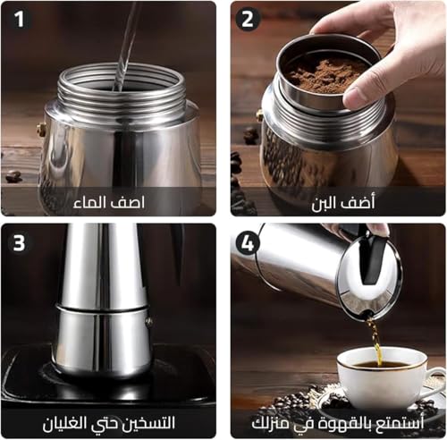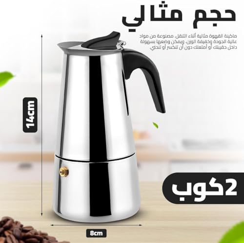 Spaceshoop - Espresso Maker, Premium Stainless Steel 2-Cup Espresso Maker, Enjoy Perfectly Brewed Coffee in Minutes