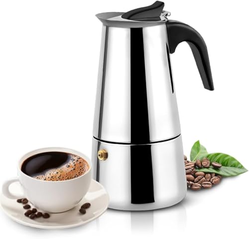Al Arab for Import & Distribution - Ismail EL Fiky - ماكينة تحضير الاسبريسو من الفولاذ المقاوم للصدأ على الموقد بسعة 2 كوب، ماكينة تحضير قهوة مخمرة في دقائق، بلون فضي
