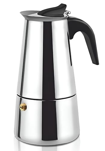 Generic - Espresso Pot - Premium Stainless Steel Italian Coffee Brewer with Comfort Handle, Heat Retentive, 4 Cups, Silver Finish