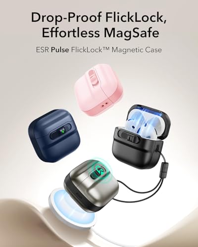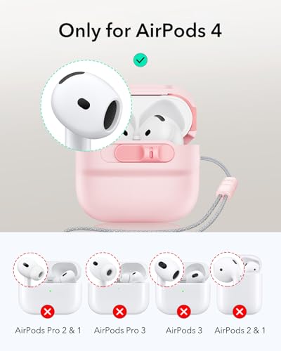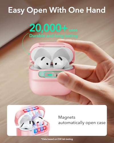 ESR - ESR for AirPods 4 Case (HaloLock), Compatible with AirPods 4 Generation Case (2024)(USB-C), MagSafe Compatible, Magnetic Lid Lock, Drop-Proof Protection Cover with Lanyard, Pulse Series, Pink