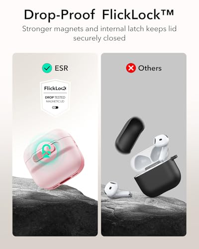 - Secure FlickLock: strong magnets with 700 g of holding force in the top and bottom of the lid and an internal latch keep your AirPods locked safely inside so they won’t pop out if dropped