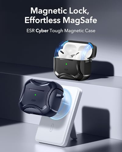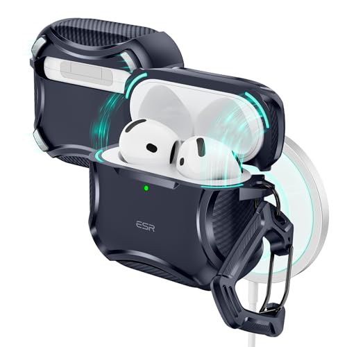 ESR - ESR for AirPods 4th Generation Case, Compatible with AirPods Case 4th Generation (2024), Compatible with MagSafe, Powerful Drop Protection, Magnetic Lid, Cyber Series, Navy Blue