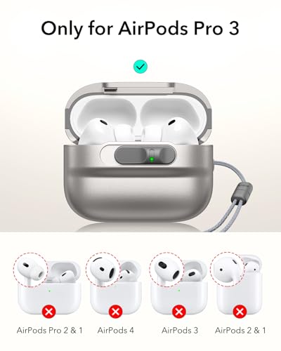 ESR - ESR حافظة ايربودز برو 3 (2025)، متوافقة مع ايربودز برو 3 (كيبل USB-C)، ماج سيف ريدي، قفل غطاء مغناطيسي، غطاء حماية كامل من السقوط مع حبل قصير، تيتانيوم