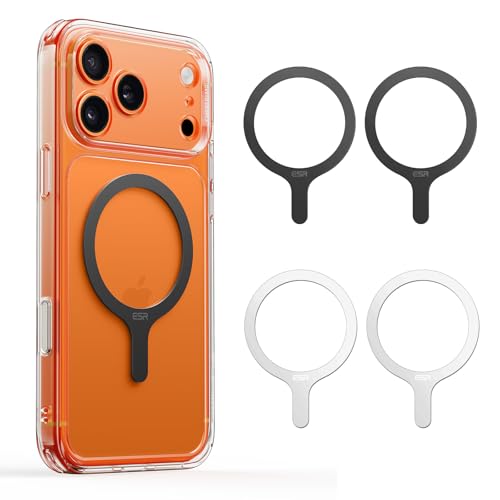 ESR - ستيكر لاصق بتقنية ماج سيف 360، حلقة مغناطيسية، طقم تحويل شامل للشواحن اللاسلكية المغناطيسية متوافق مع آيفون 15/14/13/12/11 وجالاكسي S23/S22/S21 وغيرها من اي اس ار، لون أسود وأبيض، عبوة من 4 قطع