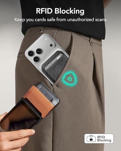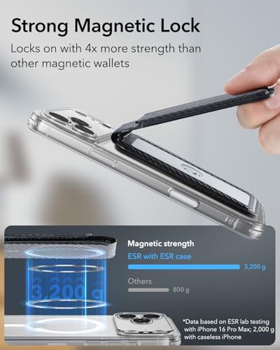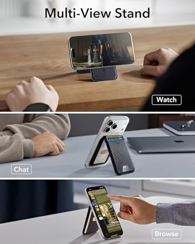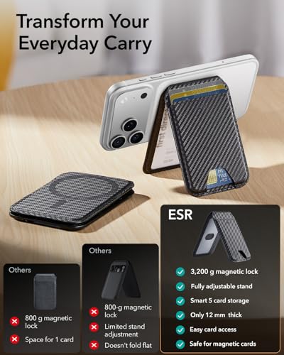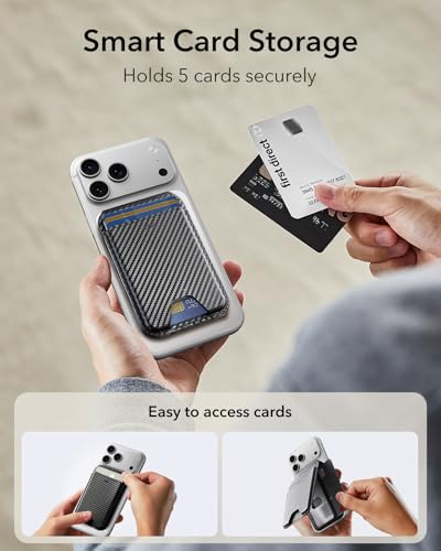 ESR - ESR for MagSafe Wallet Stand, RFID Blocking, MagSafe Ring Included, 5 Card Holder for Phone, Magnetic Wallet for iPhone 17e/17/16/15/14/13/12 Series (Not for Mini), Selected Samsung,Black Carbon Fiber