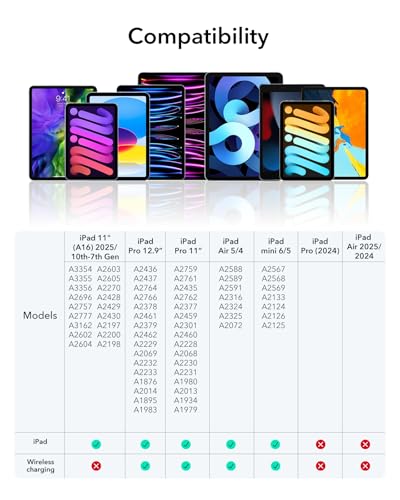 - الشحن المغناطيسي: يدعم الشحن اللاسلكي بالكامل على جميع أجهزة اي باد بوصلة مغناطيسية، حتى تتمكن من الاستمتاع بطريقة أسرع وأكثر ملاءمة للشحن؛ يتضمن شاحن قلم لأجهزة اي باد بدون شحن مغناطيسي