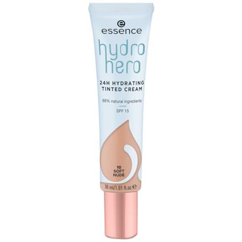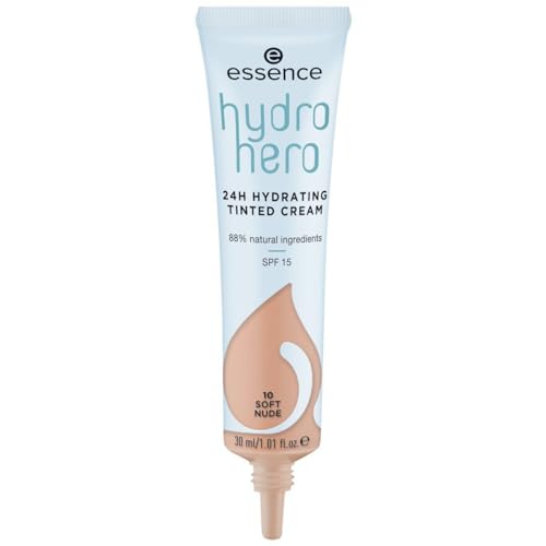 Essence - essence hydro hero 24h hydration tinted cream, make-up, foundation, no. 10 soft nude, nude, smoothing, nourishing, UVA, UVB filter, natural, vegan, oil-free, with sun protection factor, with SPF (30