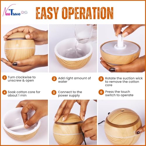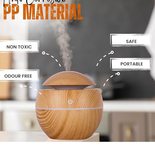 Generic - موزع زيوت عطرية بتصميم حبيبات خشبية 150 مل، ضوء ليلي LED، مرطب للمنزل والمكتب والسيارة