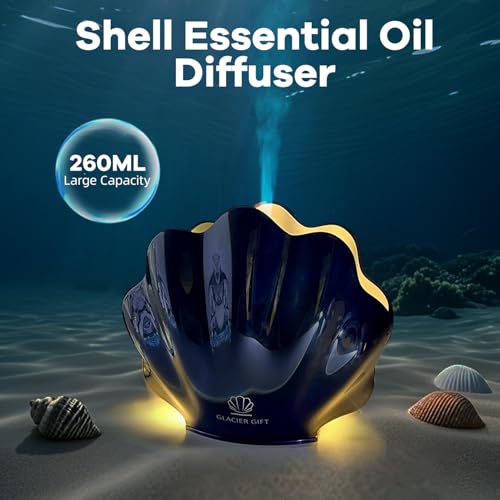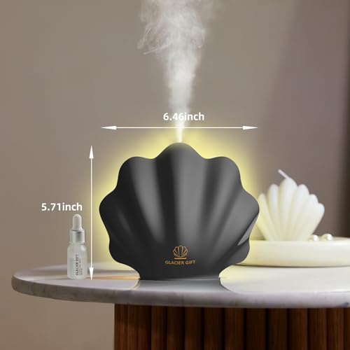 GLACIER GIFT - Essential Oil Diffuser 260ML, Shell Aroma Diffuser with Remote Control Humidifier with 7 Colors LED Night Light for Bedroom Home Relaxation (Black)