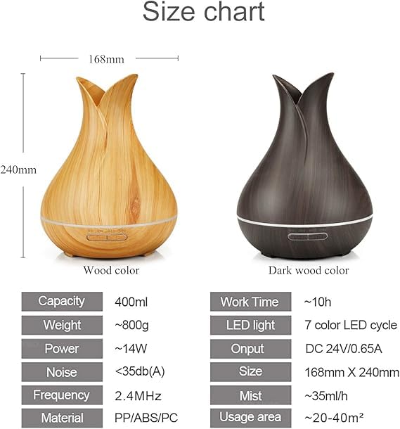 - Our aroma diffuser is 400ml that operates up to 10 hours of low continuous power and is suitable for your home to add fragrance to your bedroom, living room, or anywhere you like. It's a powerful aromatherapy diffuser that will fill any room in your home with a nice fragrant mist in just a moment. Sit back and relax, enjoy your life. You must choose from.