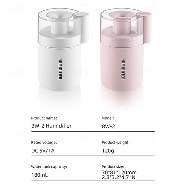 Generic - Essential Oil Diffuser, USB Mini Air Purifier with 7 Color Changing LED Lights for Car Home Office Bedroom 180m Diffuser Humidifier Mini Humidifier