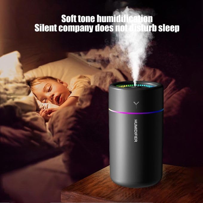 Generic - فواحة للزيوت العطرية، منقي هواء صغير بمنفذ USB مع 7 مصابيح LED متغيرة الالوان للسيارة والمنزل والمكتب وغرفة النوم 280م فواحه و مرطب وموزع، مرطب هواء صغير