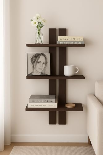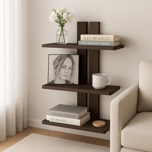- تصميم عصري: رف حائط عائم عصري من 3 طبقات بلمسة نهائية بنية داكنة ودعامات دعم غير متماثلة يخلق عرضًا مرئيًا مذهلاً