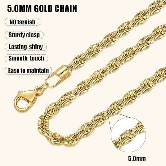 Generic - Estele Pure Braided Chain, 5.0mm, Strong Clasp, Permanent Shine, Hypoallergenic