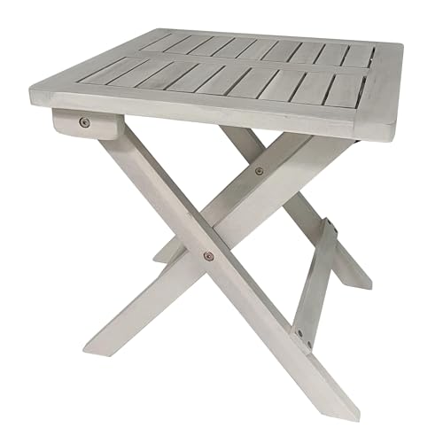 ESTEXO - ESTEXO Side Table Wooden Lounge Table Coffee Table Garden Table Folding Table Acacia Wood Balcony Table Acacia Wood Tea Table 40 x 40 cm White Varnished