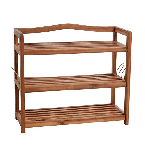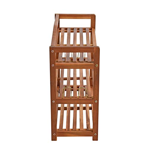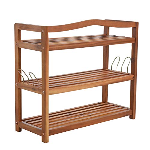 ESTEXO - رف احذية خشبي من ايستيكسو خزانة حامل 3 مستويات مقعد خشب اكاسيا