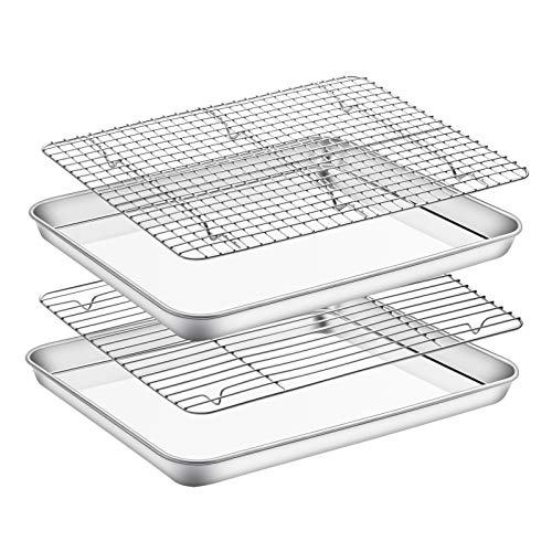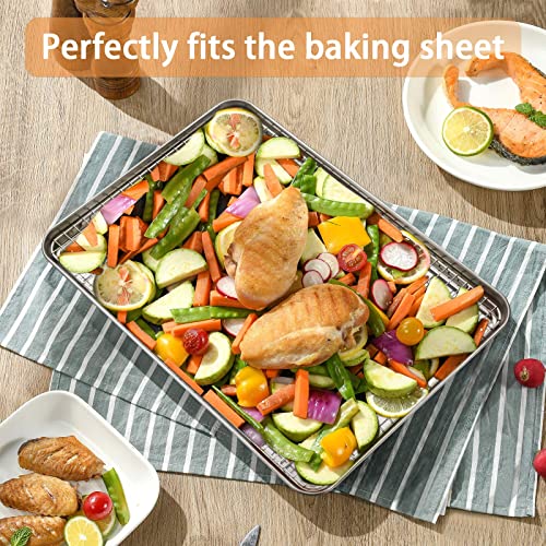 Estmoon - Estmoon Baking Sheet with Cooling Rack Set , Set of 4 [2 Sheets+2 Racks],Size 16x12x1 Inch, Stainless Steel Cookie Sheet for Baking Use, Baking Pan Non Toxic &Heavy Duty ,Oven & Dishwasher Safe