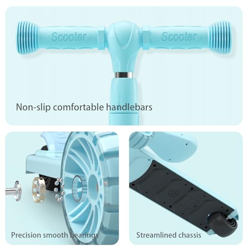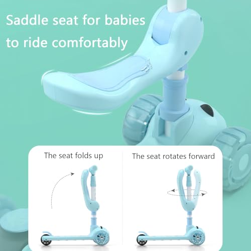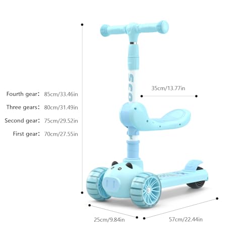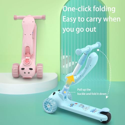 ESYAMIPET - 3-in-1 Kids Scooter, 4-Position Height Adjustable Foldable Seat, PU LED Wheels, 3 Wheels for Girls and Boys, Indoor and Outdoor Use, Pink (BLUE)