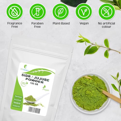 ETC Cosmetic`s - SIDR (Jujube) Powder 100 g - A Natural Detergent Plant Powder Suitable for All Hair Types, Also for Thin, Weak and Damaged Hair, 100% Pure and Natural (100 g)