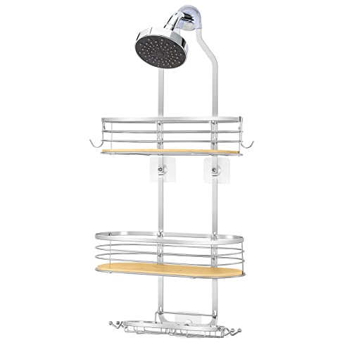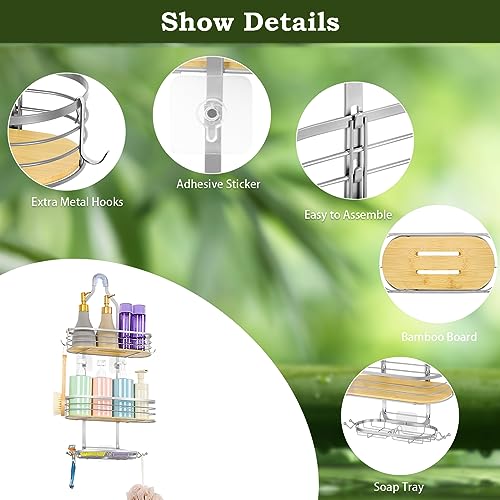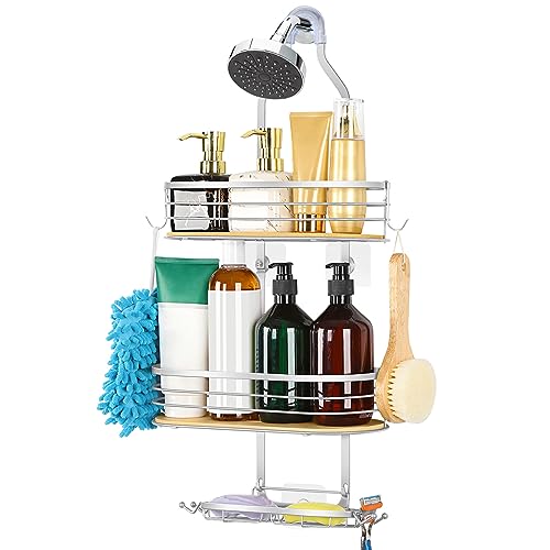 - 【Metal frame & Bamboo Board】The rustproof shower caddy is made of metal material and bamboo board, which ensures its stability and durability. You can use for a long time. Bamboo board material adds a unique charm for your bathroom. The hanging shower organizer can match different bathroom decor styles.